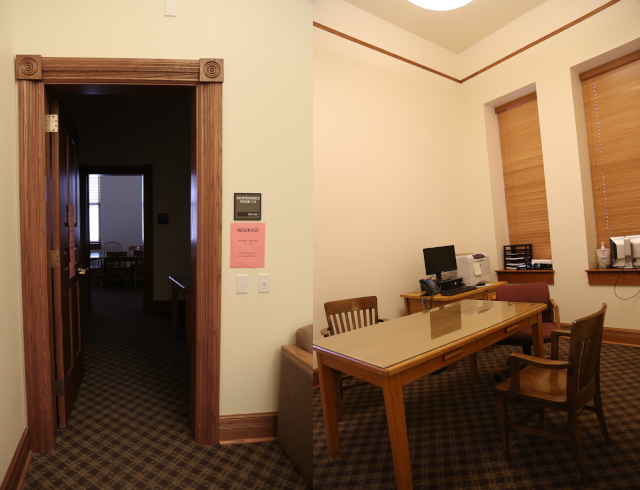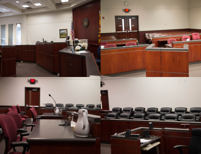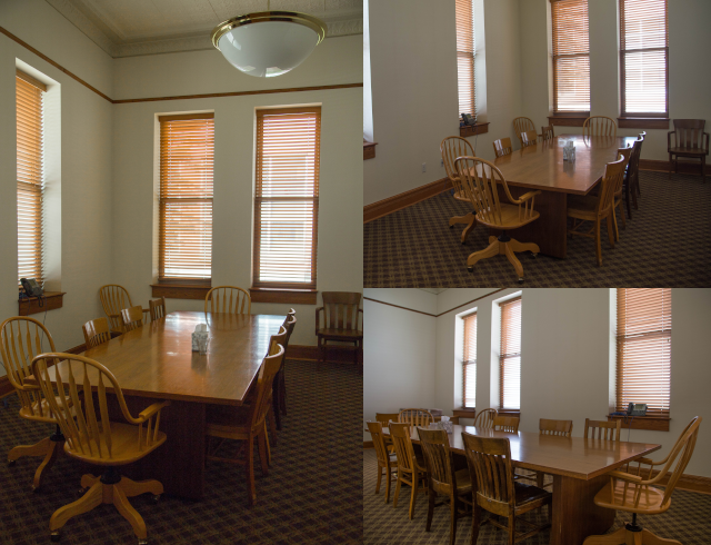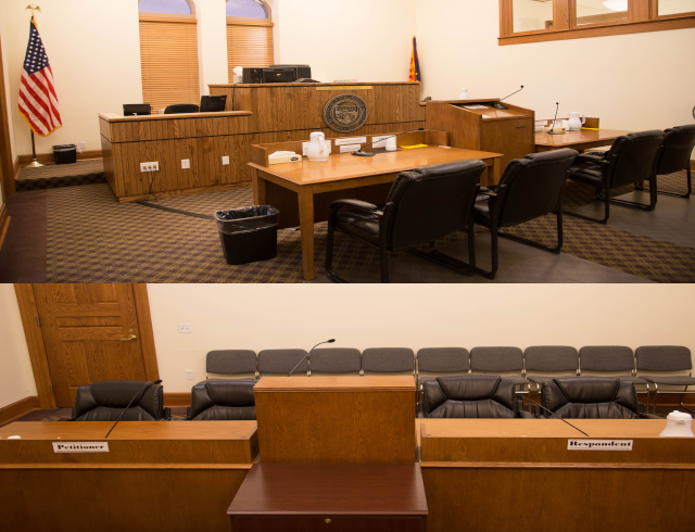 The Division VI courtroom is located upstairs in the old courthouse. Division VI hears cases involving family law without kids.