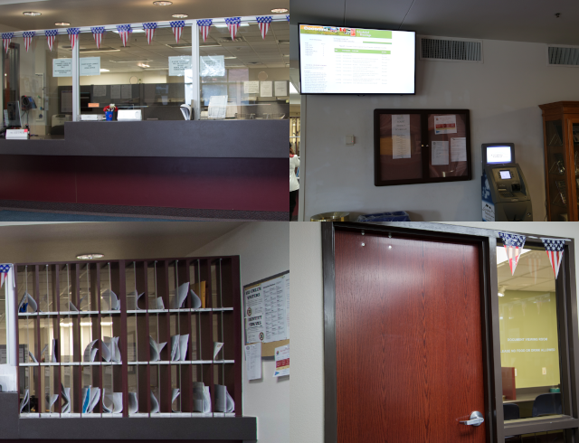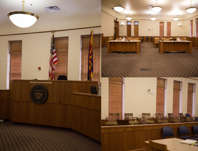 At the window of the Coconino Superior Court you are able to pay fines, file paperwork, and ask questions. Cash, cashier's check, and money orders are accepted methods of payment; they have an ATM available as well. Next to the counter is a small room, where one can quietly read court documents. They also have large screens throughout the courthouse to tell visitors what time and in what courtroom they are to appear in.