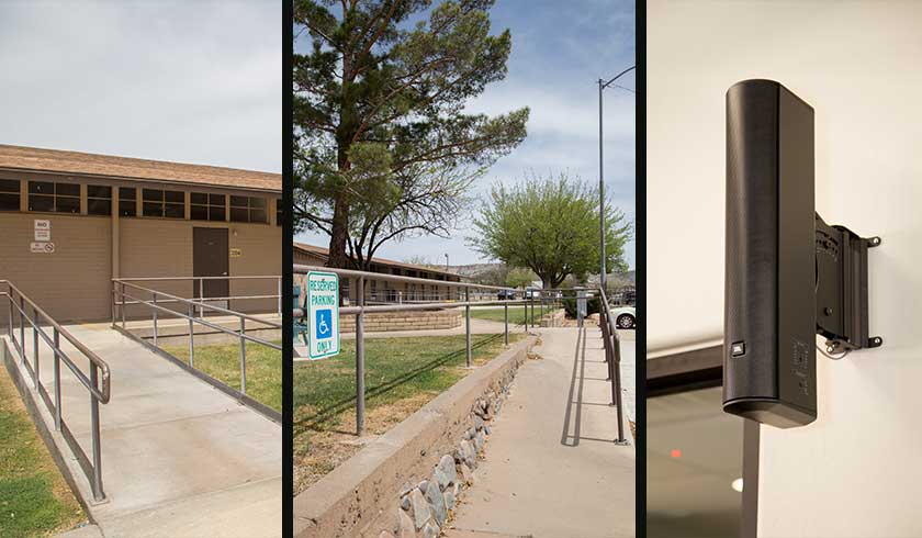 There are designated handicapped parking spaces located outside of the courthouse. The courthouse is accessible using either an access ramp or stairs. The courtroom is equipped with sound amplifiers. For non-English speakers interpreters are provided either in person or remotely, depending on the language.