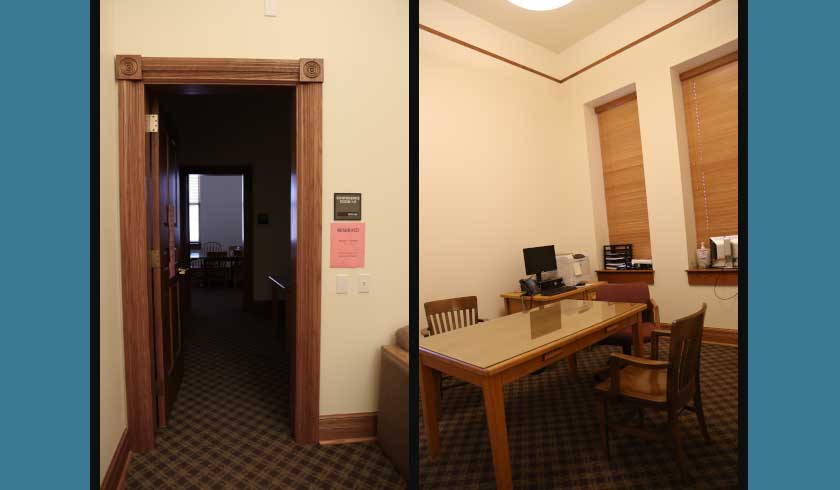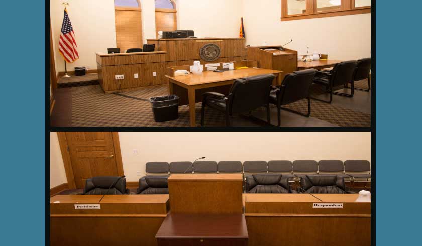 The Division VI courtroom is located upstairs in the old courthouse. Division VI hears cases involving family law without kids.
