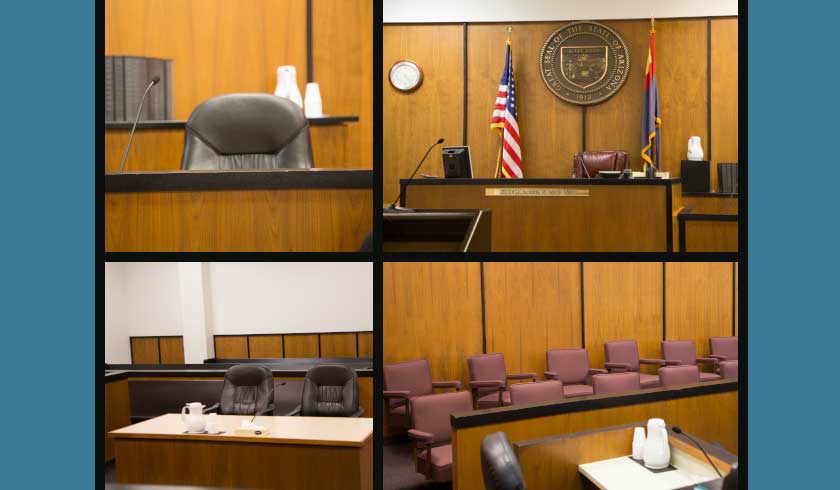 The Division V courtroom is located upstairs in the courthouse. Division V hears cases involving Probation Revocation, criminal and civil issues, family law, limited jurisdiction court of appeals, and Veterans Court.