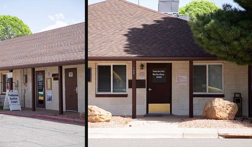 The Fredonia Justice Court, is found off of Hwy 89A (also known as Main St.) and Jensen St. in Fredonia, Arizona. It is on the eastside of the road in the Coconino County Offices complex.