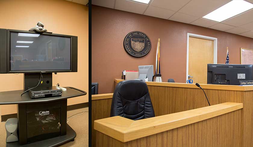 The entrance to the courtroom is in the lobby area. All individuals entering the courtroom need to check in at the window. Children are allowed in the courthouse as long as they are behaving. Please be respectful of the courthouse by ensuring that you are dressed appropriately: