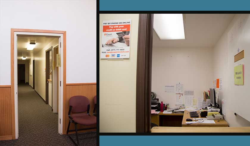 The probation office is located, up the hill from the courthouse. You can either walk from the courthouse or move your vehicle to the probation office parking lot. Folllow the green signs, directing you to the probation department.