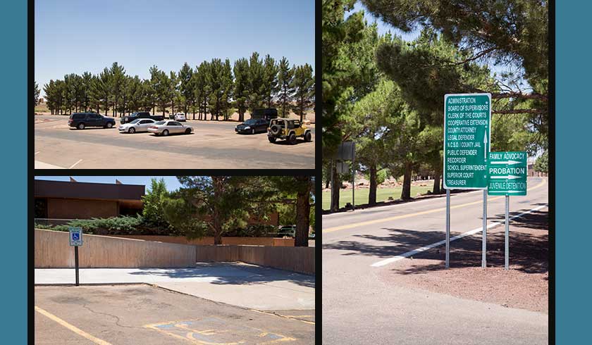 Free public parking is available outside the courthouse, along Code Talker Drive. Follow the signs that direct to the large, public parking lot. Handicapped parking is available.