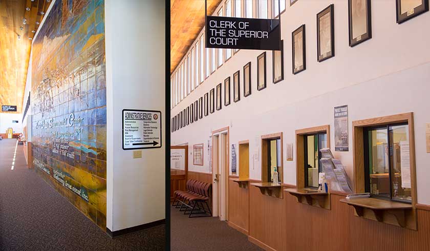 The Navajo Superior Courthouse is a one story building. The complex has a ramp that leads from the parking lot, as well as one that leads to the courthouse entrance.