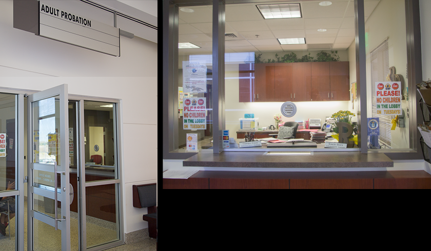 The Adult Probation department is located on the 2nd floor of the courthouse. Children are not allowed into the office on Tues. Probationers wait in the lobby of the probation office until they are called back for their private meeting. There is no right to privacy - drug testing and searches take place.