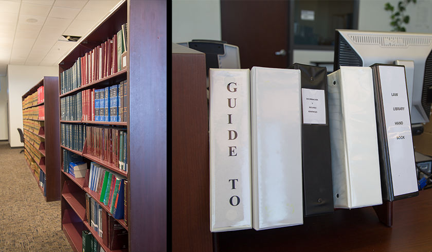 The Law Library contains books with current and historic Arizona laws. On the front desk, guides and handbooks are available to view and help provide information to users as they fill out forms. Staff at the Law Library are also available as a resource for visitors.