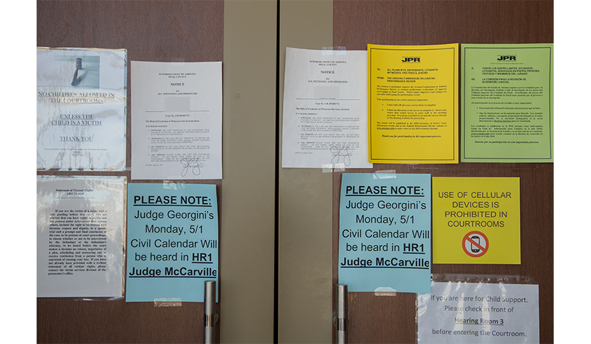 Prior to entering a courtroom, read the notices that are posted on the door. These will inform individuals of any changes that have occurred, rules specific to the case, and courthouse policies.