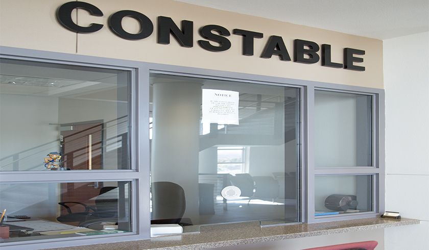 The Santa Cruz Superior Courthouse has a window dedicated to the local constable. The constable is available to assist with service of civil and criminal papers.