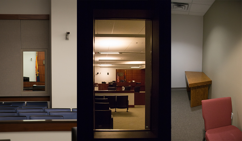 Courtrooms 4 and 5 in the Santa Cruz Courthouse have viewing rooms available for victims who are not comfortable being in the same room as the accused. The rooms are wired for sound and have one-way glass. If an individual is not behaving, but required to be present, they may be removed to one of these rooms to witness the proceedings.