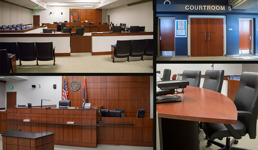 Courtroom 5 of the Santa Cruz Superior Court is located upstairs, to the left of the staircase. The courtroom hears criminal, civil, domestic, delinquency, and family law matters. The courtroom is equipped with a witness viewing room.