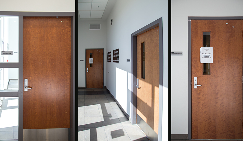 The offices to the adult and juvenile probation departments are located in the same building as the Courthouse. After passing through security, the probation department will be located to the left. There is an exterior door that leads to a hallway, with adult probation being on the right and juvenile at the end of the hall.
