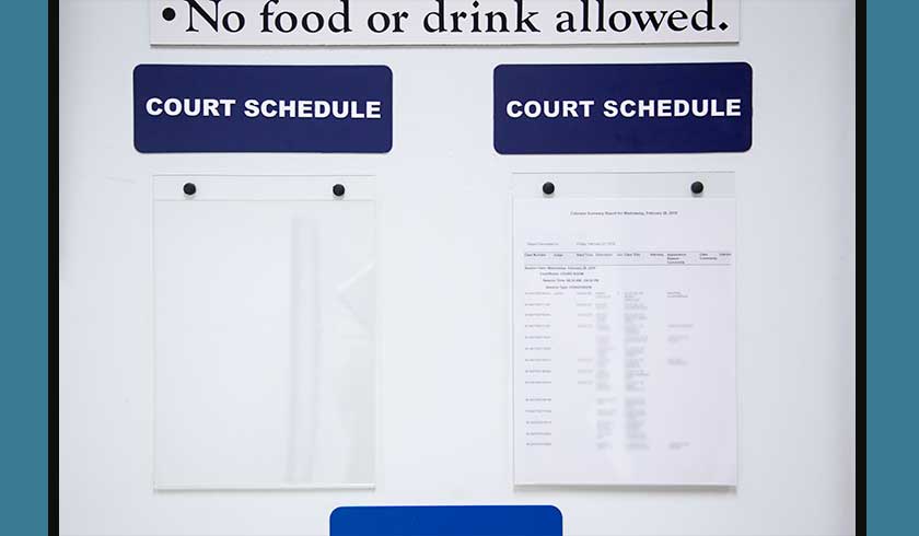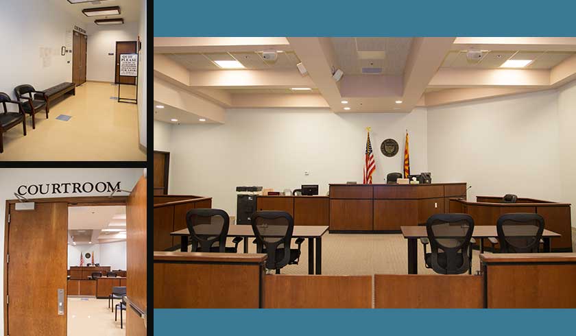 The courtroom is located off of the lobby area, through the double doors. If you have a scheduled hearing, you will sign in inside the courtroom. Cell phones, video cameras, and recording equipment are not allowed into the courtroom. Children are not allowed unless given permission. Please ensure that you are dressed appropriately.