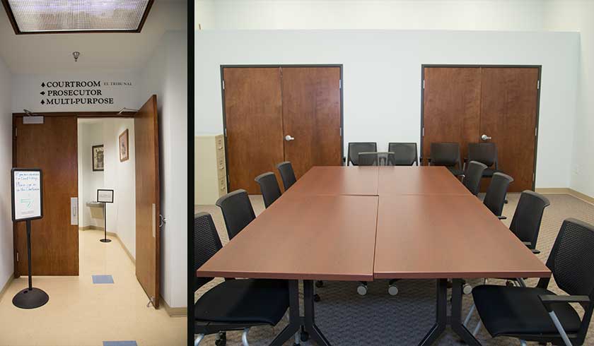 There are two rooms designated as meeting rooms. These rooms are used as client-attorney meeting areas and spaces for individuals during a court hearing. Access to these rooms has to be granted through the clerk.