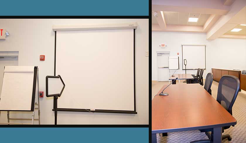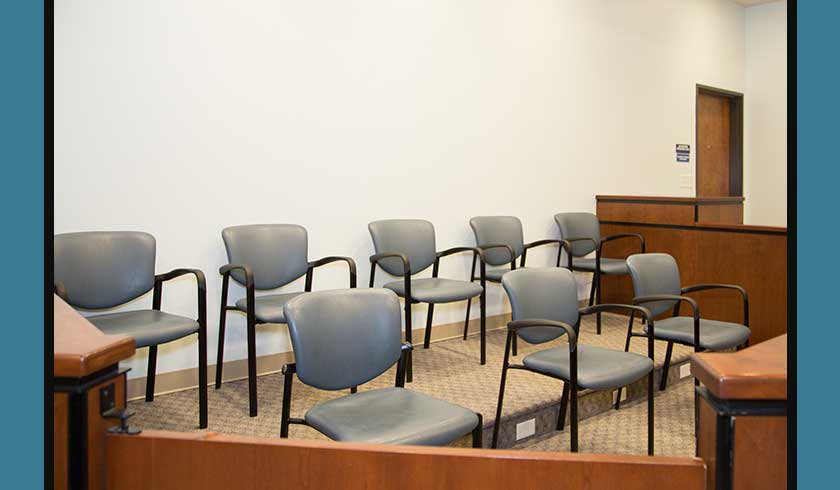 The conference room, directly across from the courtroom is dedicated to jury assembly, jury deliberations, mediations, and employee trainings.