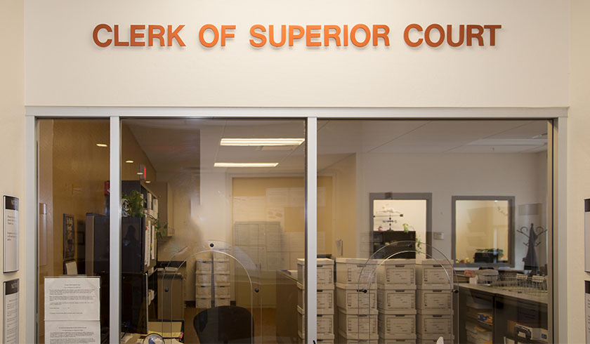The Window of the Clerk is located down the hallway, to the right of security. There are two windows available for filings and information.