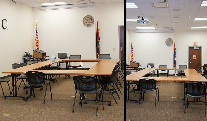 The Juvenile Justice Center has rooms dedicated to large and small group meetings. Example of uses are mediation and attorney/client meetings.